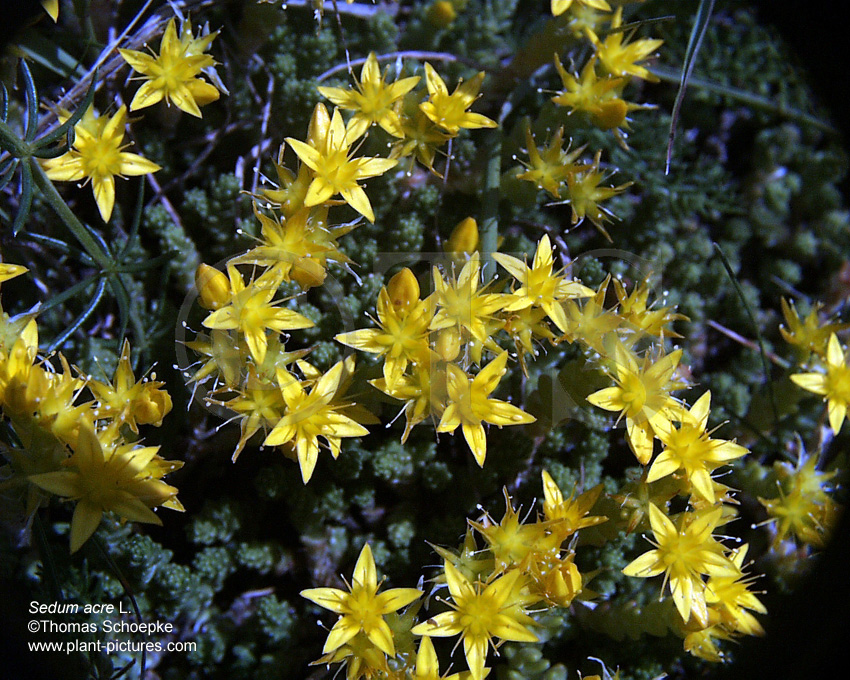 Scharfe Mauerpfeffer zeigt wesentliche Punkte des für Crassulaceen typischen